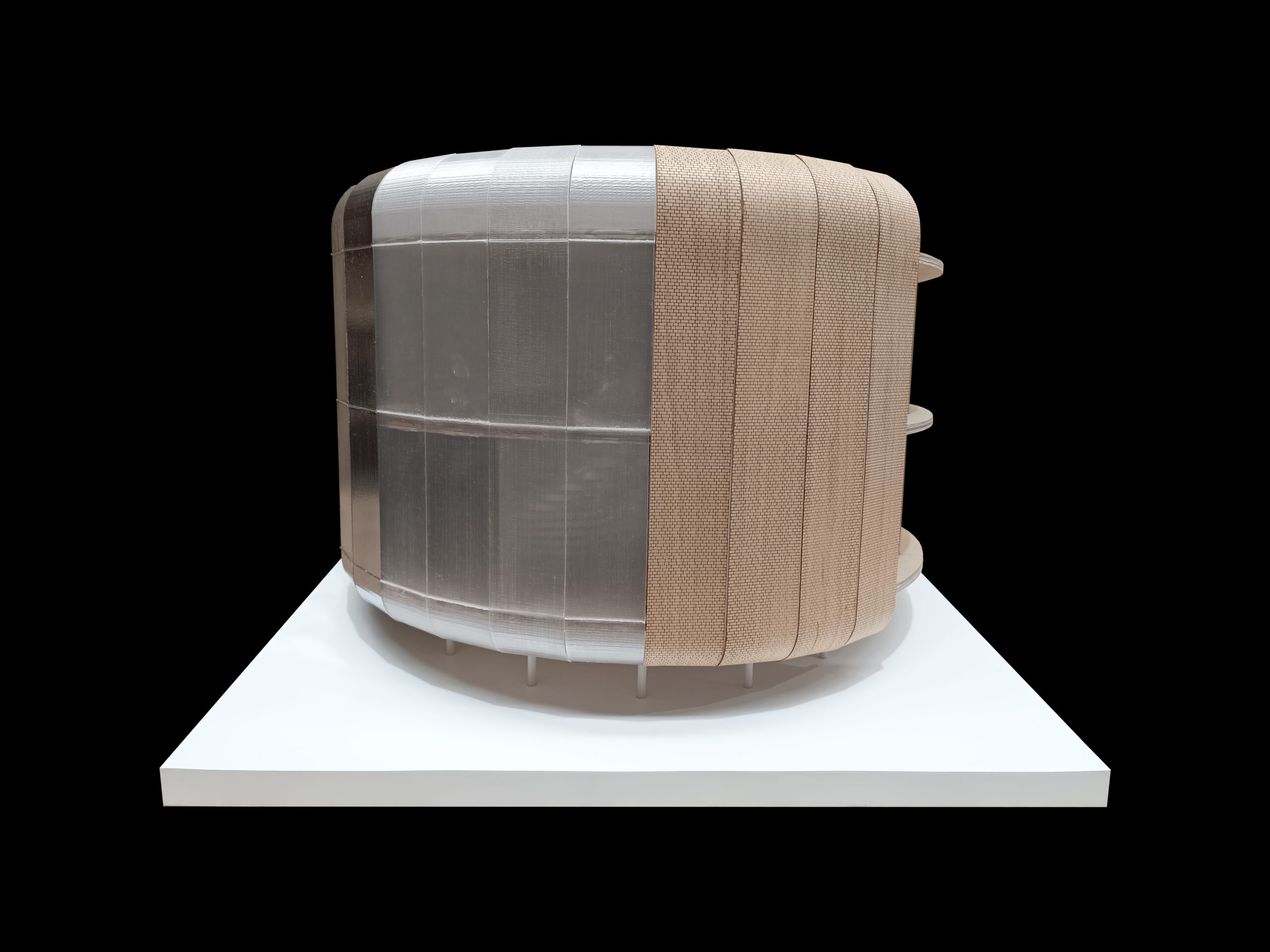 Maqueta arquitectónica de vivienda prefabricada de dos alturas realizada en madera contrachapada de abedul finlandés. El concepto que se pretende transmitir es la capacidad de adaptación del proyecto al lugar de implantación, mediante la utilización del mismo módulo de fachada intercambiable en diferentes materialidades: madera, hormigón impreso, células fotovoltaicas y chapa metálica.