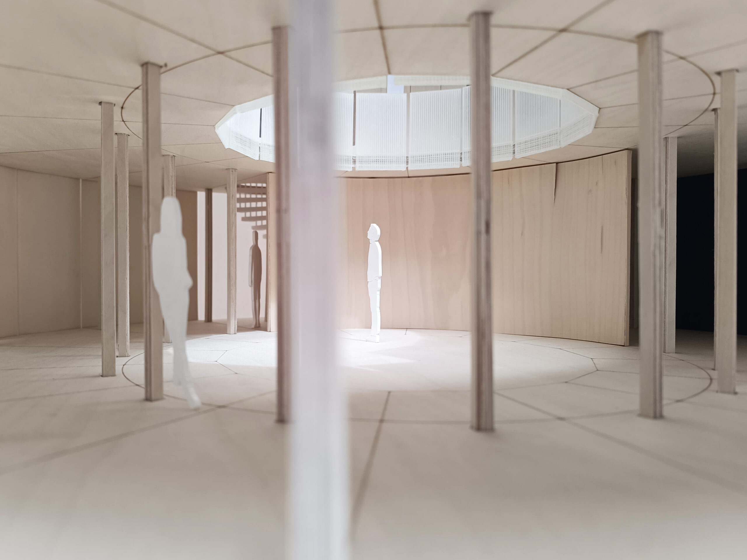 El resto de elementos arquitectónicos se realizan en corte láser con imprimación neutra para la base y materialidad translúcida en interiores, mientras que se utiliza impresión 3D de resina HD para las partes figurativas.
